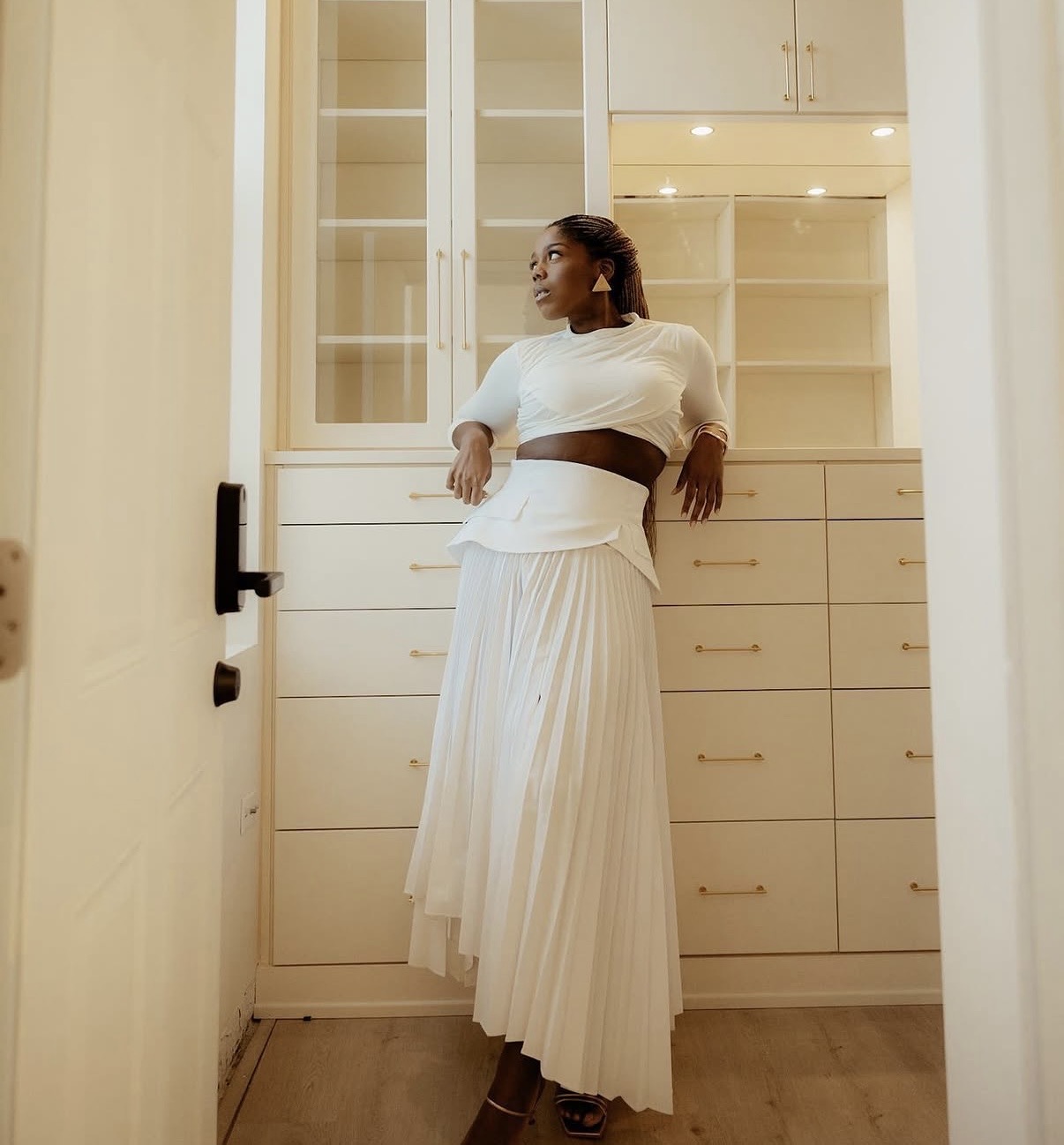 Ultimately, the key lies in drawing attention to the waistline. By adjusting the structure or length of the top, the volume of the skirt is allowed to fall with intention, creating a more refined silhouette.