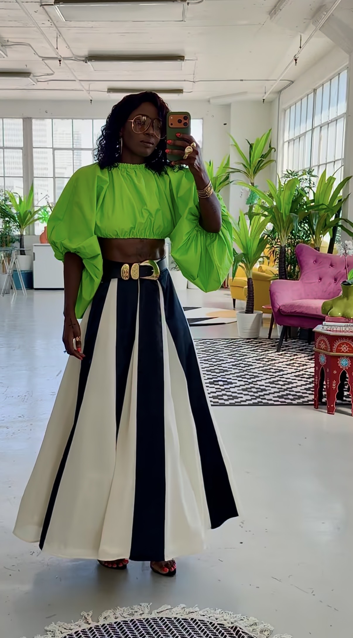 It’s no longer about playing it safe with predictable combinations. Rather, the emphasis now lies on contrast, intention, and a strong sense of presence that carries through the entire outfit. The volume remains, and the length still delivers drama; however, the styling has shifted completely. As a result, the A-line maxi skirt is no longer just a piece—it becomes the anchor of the look, grounding every element around it.