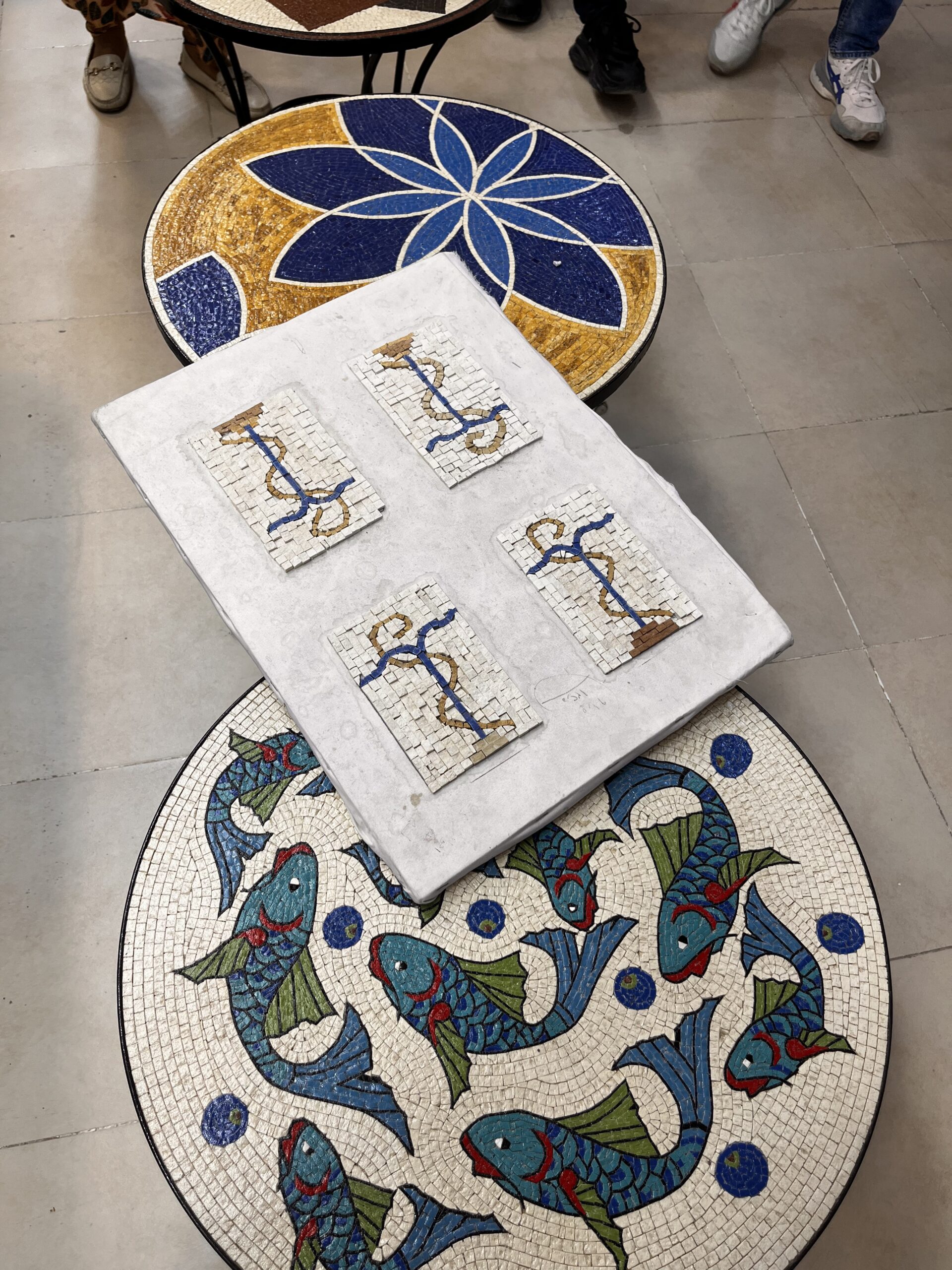 Now, here’s where the gist gets interesting. We were taken to learn (more like see) the process of mosaic making. I’ll try to explain Mosaic in the best and most layman way as I can. Mosaic is the process of breaking tiny little stones to make stunning designs. Sometimes, these designs can become art works or even jewelry.