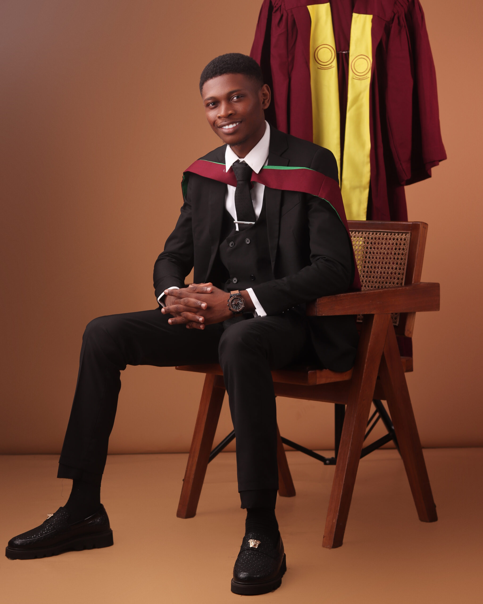 Benedict Umeozor, University of Lagos (UNILAG) Overall Best Graduating Student, in his official graduation outfit and regalia for the 56th Convocation.