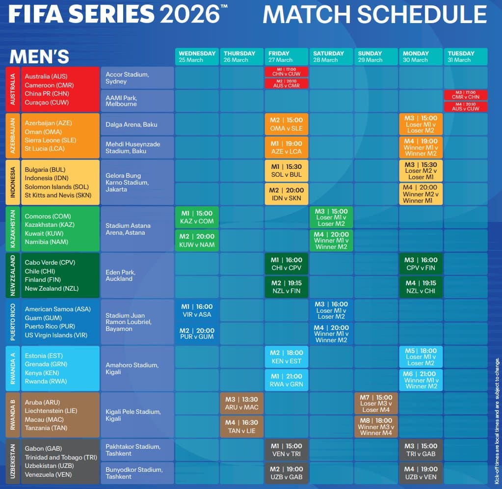 Rwanda is set to take centre stage on the global football map after FIFA released the full match schedule for the expanded FIFA Series 2026, confirming the East African nation as host of two groups in the international friendly tournament.