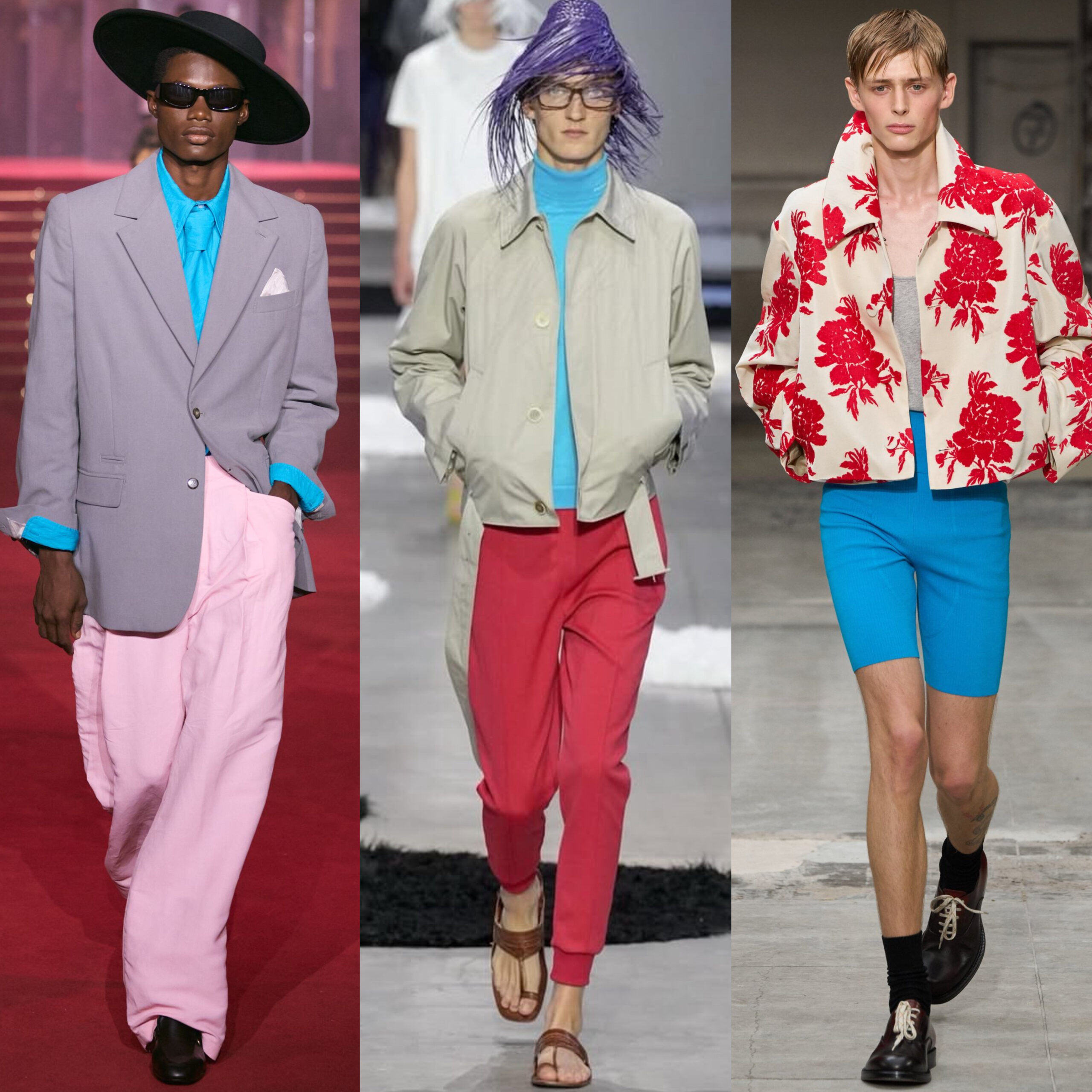 Color plays a major role this season, with a standout shade emerging across collections: a vivid, almost nostalgic aqua blue. Designers like Dries Van Noten and Martine Rose embraced it in bold, unexpected ways.